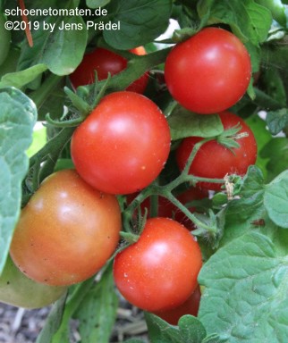 kleine (ø 3,5 bis 3,8 cm), 15 bis 25 g schwere, runde, rote Früchte